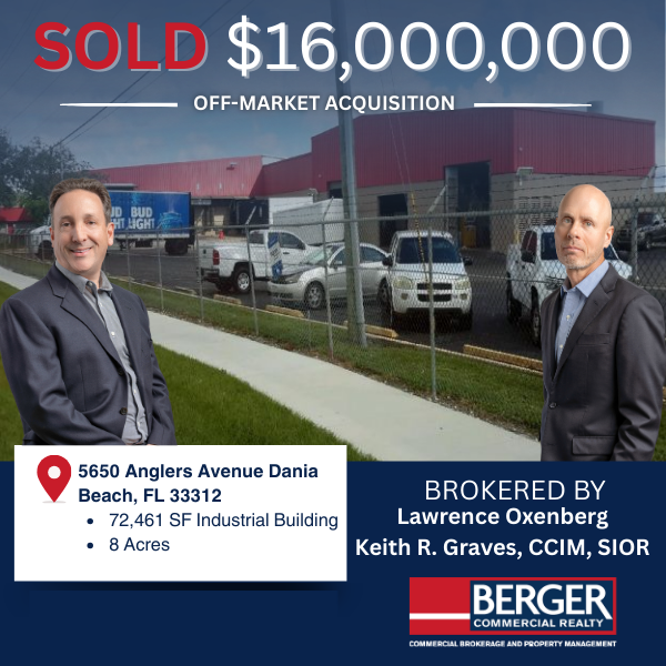 ✔ Office, industrial, land, flex, and retail space transactions across South Florida.